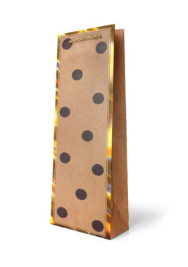 Gift Bag Bottle: Foiled Gold Border Black Circles on Brown