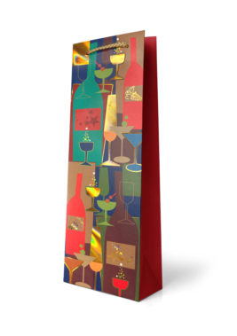 Gift Bag Bottle: Foiled Multicoloured Bottles and Wine Glasses