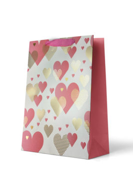 Premium Gift Bag Large: Foiled Pink and Gold Hearts on White