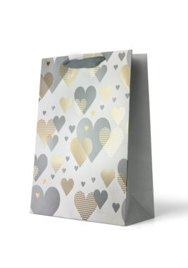 Premium Gift Bag Large: Foiled Gold and Grey Hearts on Grey