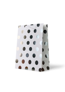 Premium Gift Bag Medium: Foiled Silver Spots on White