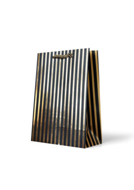 Gift Bag Medium: Black and Gold Thin Vertical Stripes