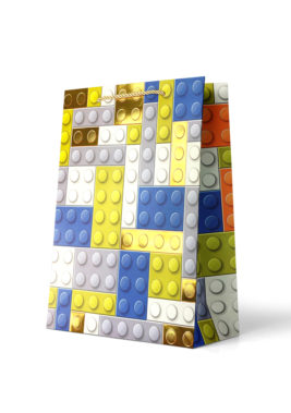 Gift Bag Large: Gold White and Blue Bricks