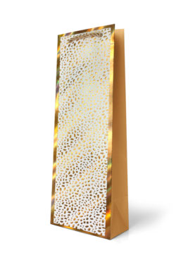 Gift Bag Bottle: Foiled Gold Border Pebble Pattern on White