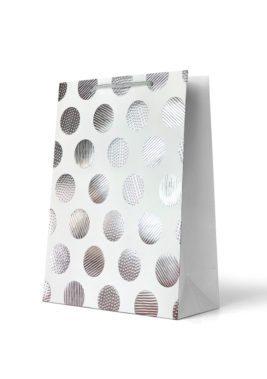Premium Gift Bag Large: Foiled Silver Patterned Spots on White