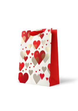Premium Gift Bag Medium: Foiled Gold Hearts on Red and White