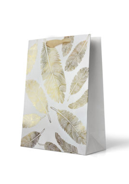 Premium Gift Bag Large: Foiled Gold Feathers on White