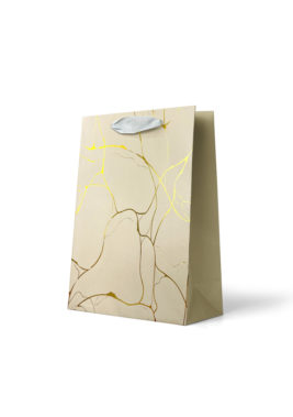 Premium Gift Bag Medium: Foiled Gold Line Pattern on Gold