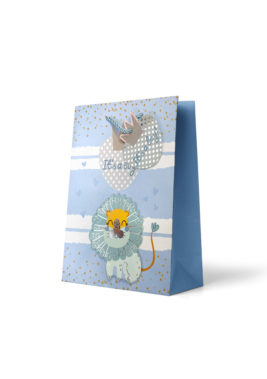 Premium Gift Bag Medium: 3D Lion with Party Hat in Jungle