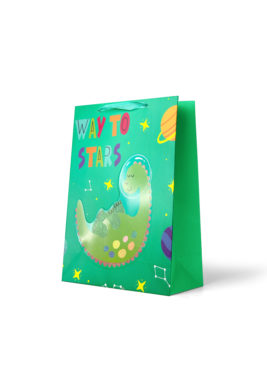 Premium Gift Bag Medium: Foiled Multicoloured Stripes and Silver Stars on Blue