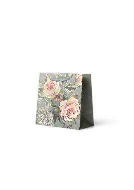 Gift Bag Small: Pink Roses with Gold Foiling on Grey