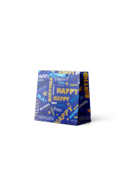 Gift Bag Small: “Happy Birthday” Gold Glitter on Blue