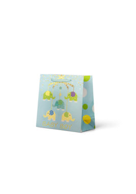 Gift Bag Small: “BABY BOY” Elephant Mobile with Gold Glitter