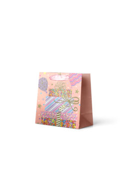 Gift Bag Small: “Happy Birthday”Colourful Writing with Foil on Pink