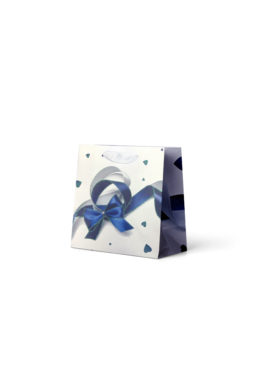 Gift Bag Small: “Best Wishes” Blue Presents with Gold Glitter