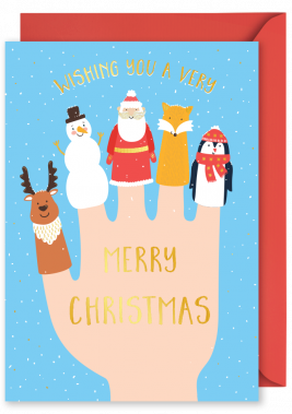 Foiled Christmas Vertical Card: “Merry Christmas” Finger Puppets