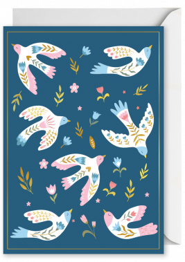Foiled Christmas Vertical Card: Patterned Doves