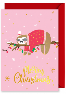 Foiled Christmas Vertical Card: “Merry Christmas” Cute Sloth