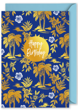 Foiled Blank Vertical Card: Gold Palms on Blue