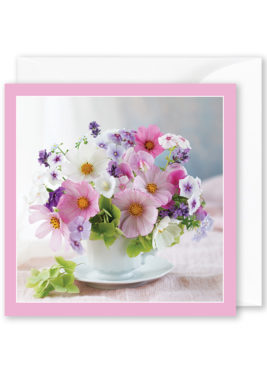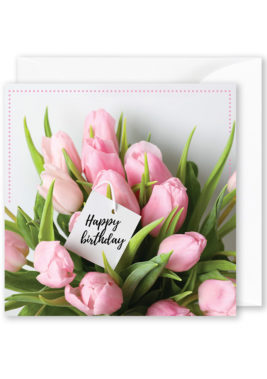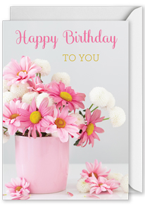 Birthday Card: “Happy Birthday to you” – Pink daisies in pink vase